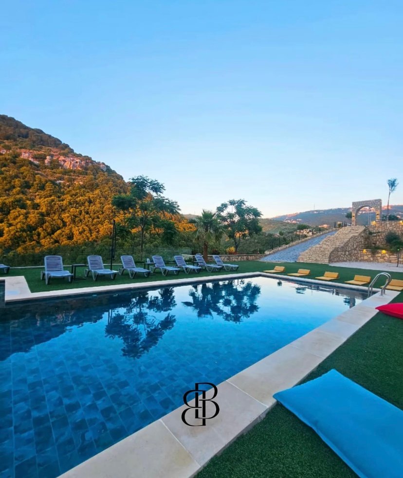 Located just 10 minutes from Batroun, this elegant venue can accommodate up to 500 guests, making it perfect for weddings and special events. It features a private pool, a landscaped garden, a kitchen bar, barbecue area, bonfire setup, lighting, sound system, refrigerator, free Wi-Fi, and fully equipped facilities, including bathrooms and a changing room, with music allowed. A dedicated event planner is included to ensure every detail is carefully managed. Additional services such as catering, decoration, live cooking stations, and bar catering are also available to elevate your event experience.