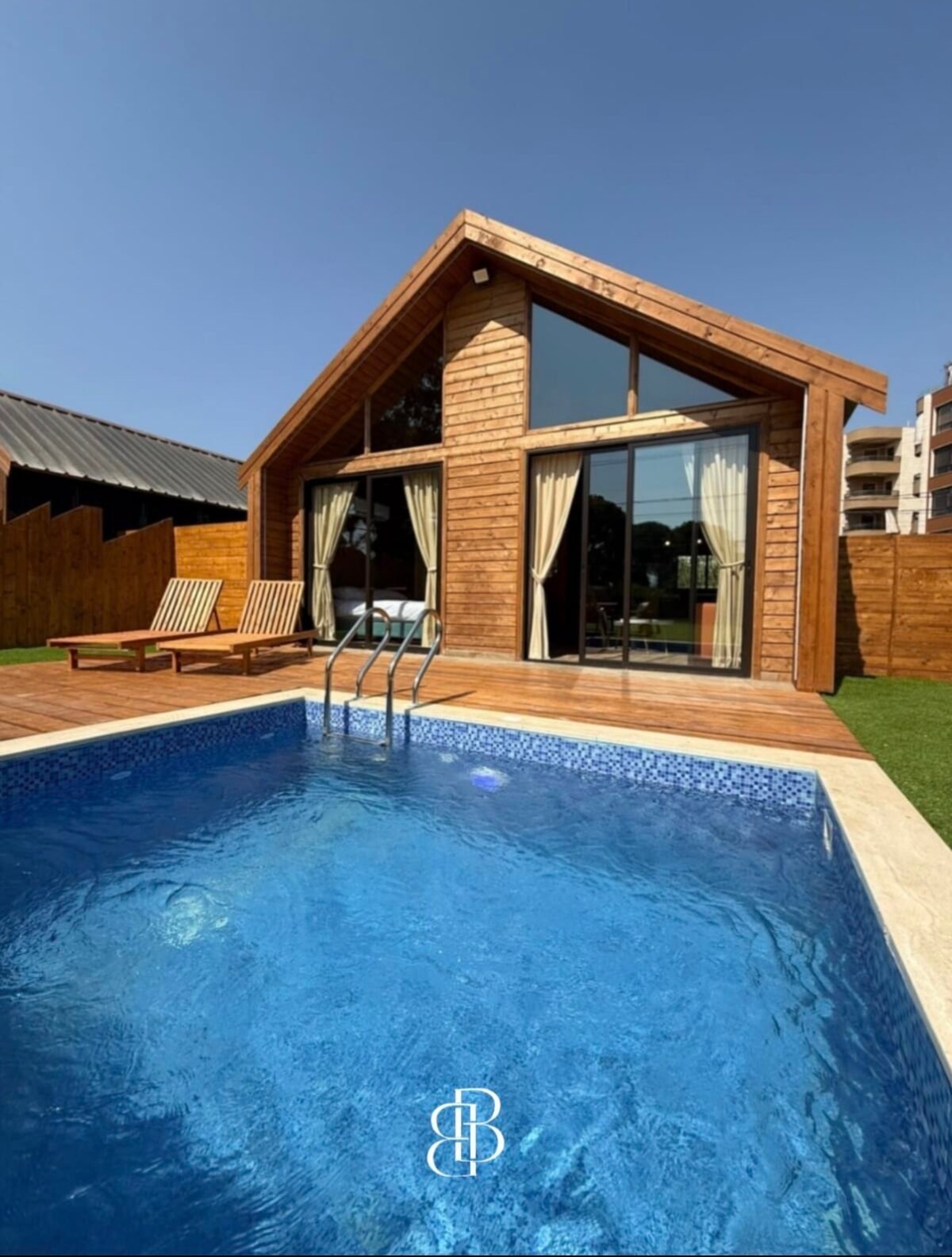 Located in Batroun, just 2 minutes from Batroun Souks, this property comprises 5 bungalows: one large unit with 4 king-size bedrooms, two medium units with 2 king-size bedrooms each, and two small units with 1 king-size bedroom each. All units include a living room, a fully equipped kitchen, and a bathroom. Amenities feature 24/7 electricity, air conditioning, a smart TV, free Wi-Fi, towels, parking, a private pool, and a BBQ.