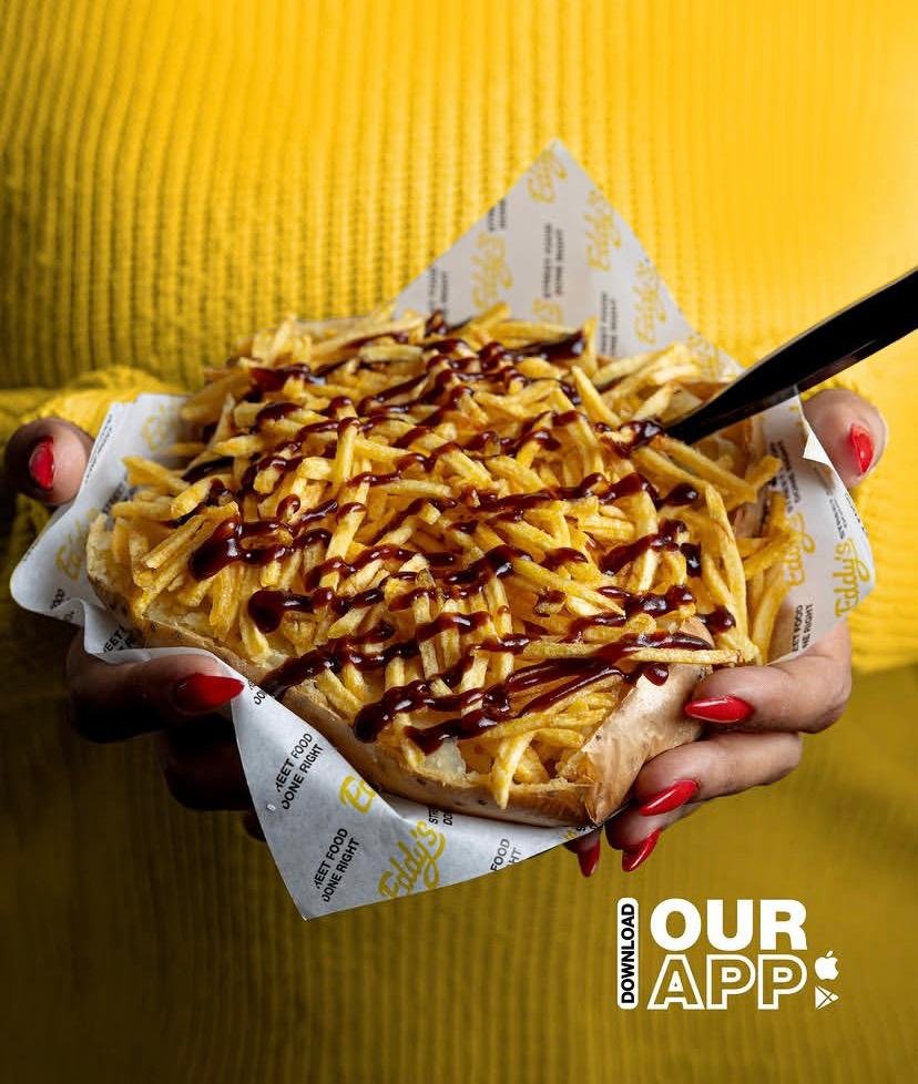 Eddy’s Street Food serves Kaake Traboulsiye, hotdogs, baked potatoes, and crepes, with delivery available for your convenience.
