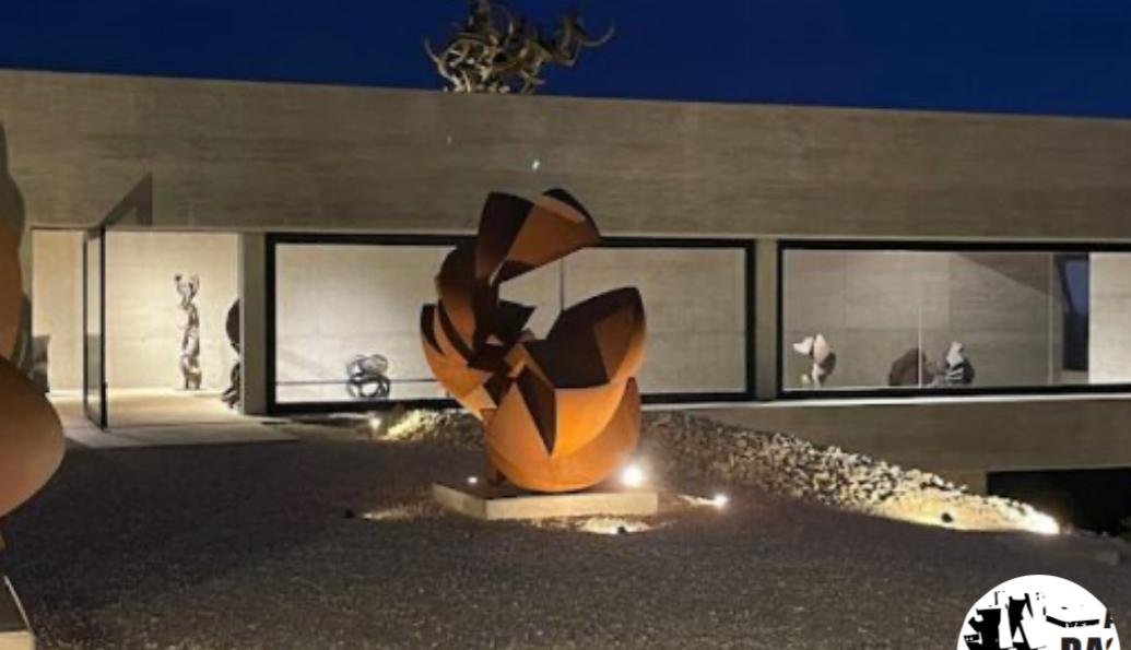 It displays around **50 of his sculptures** made from materials like steel, marble, wood, and concrete. The museum building is a notable **brutalist concrete design** overlooking the sea and olive groves.